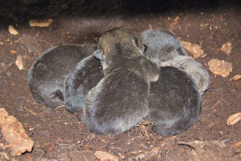 Wolf pups in the cavity den