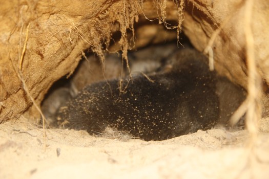 Previous Image Next Image _MG_1059 Wolf pups hid in the narrow passage of former red fox-earth comming from wolf denning chamber