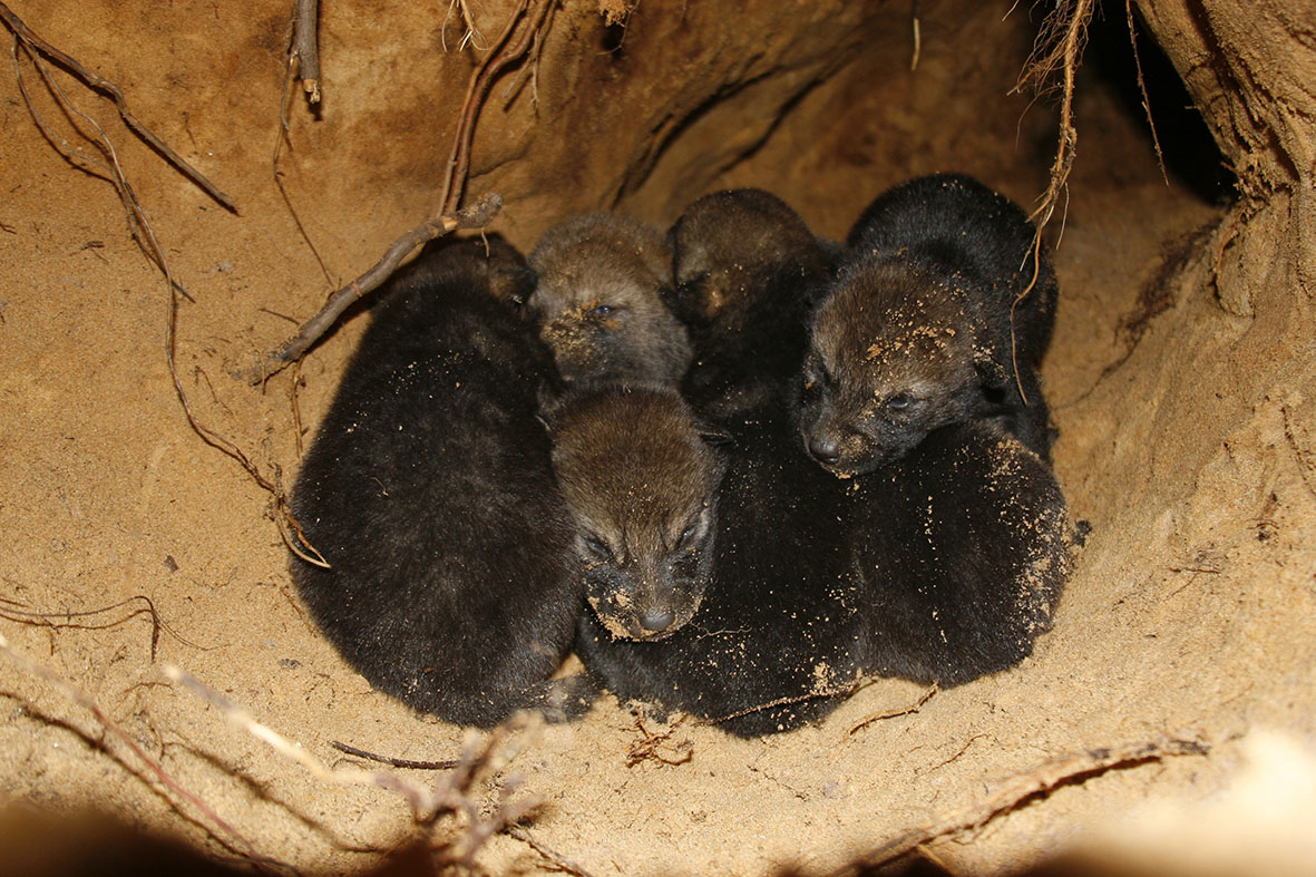 Previous Image Next Image _MG_1125Jan Wolf pups in burrow-den, that was done by parent wolves basing on a red fox earth