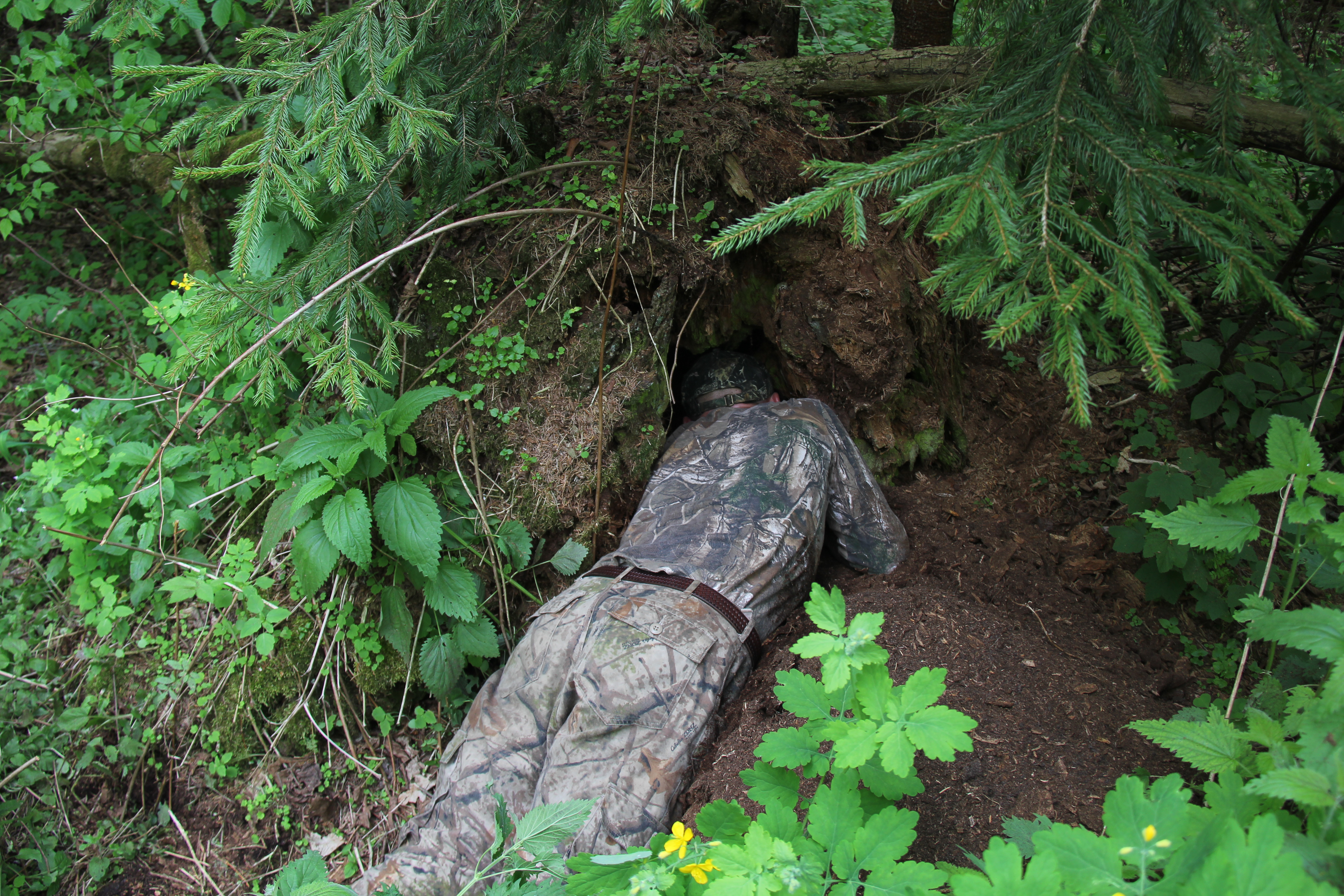 Me inspecting wolf cavity-den