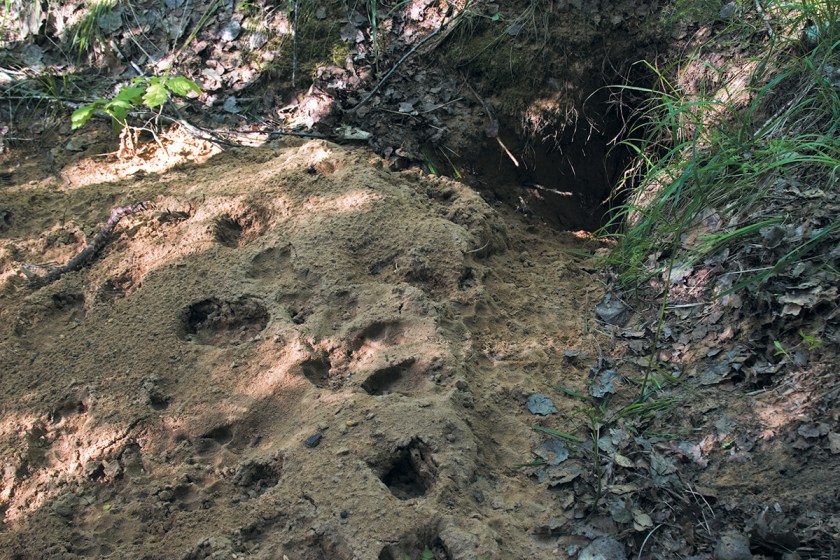 Wolf burrow-den; see trampled pathway to the entrance