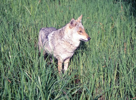Wolf mother in grassland not far from the den