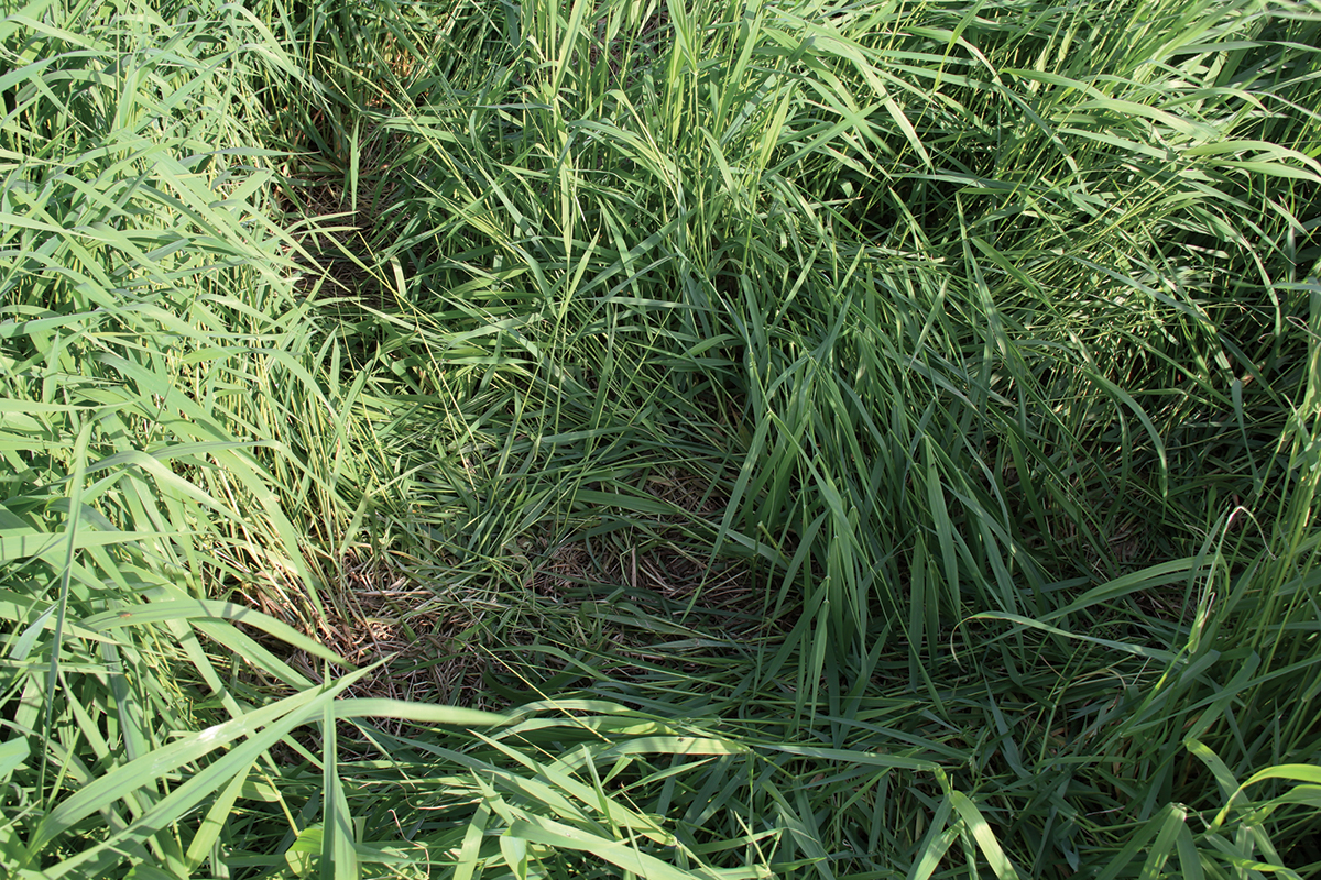 Wolf pup couch in grassland