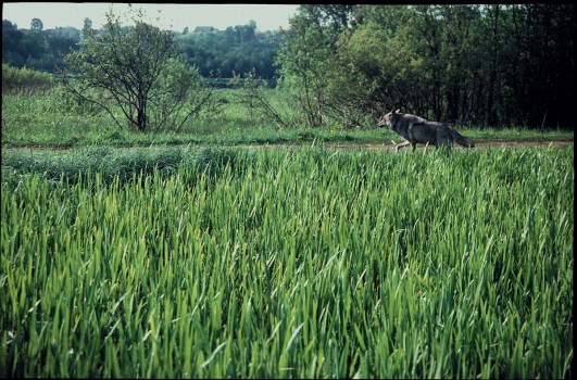 Previous Image Next Image Summer094Vd Breeding wolf coming from the den in grassland on the nearest road