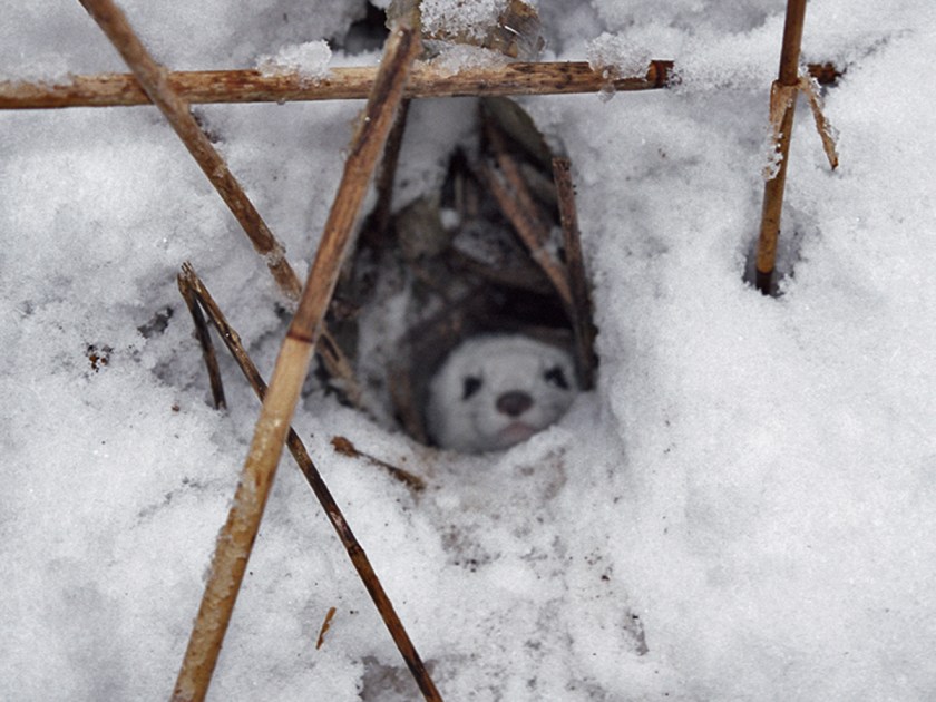 Stoat in its tunnel under snow cover