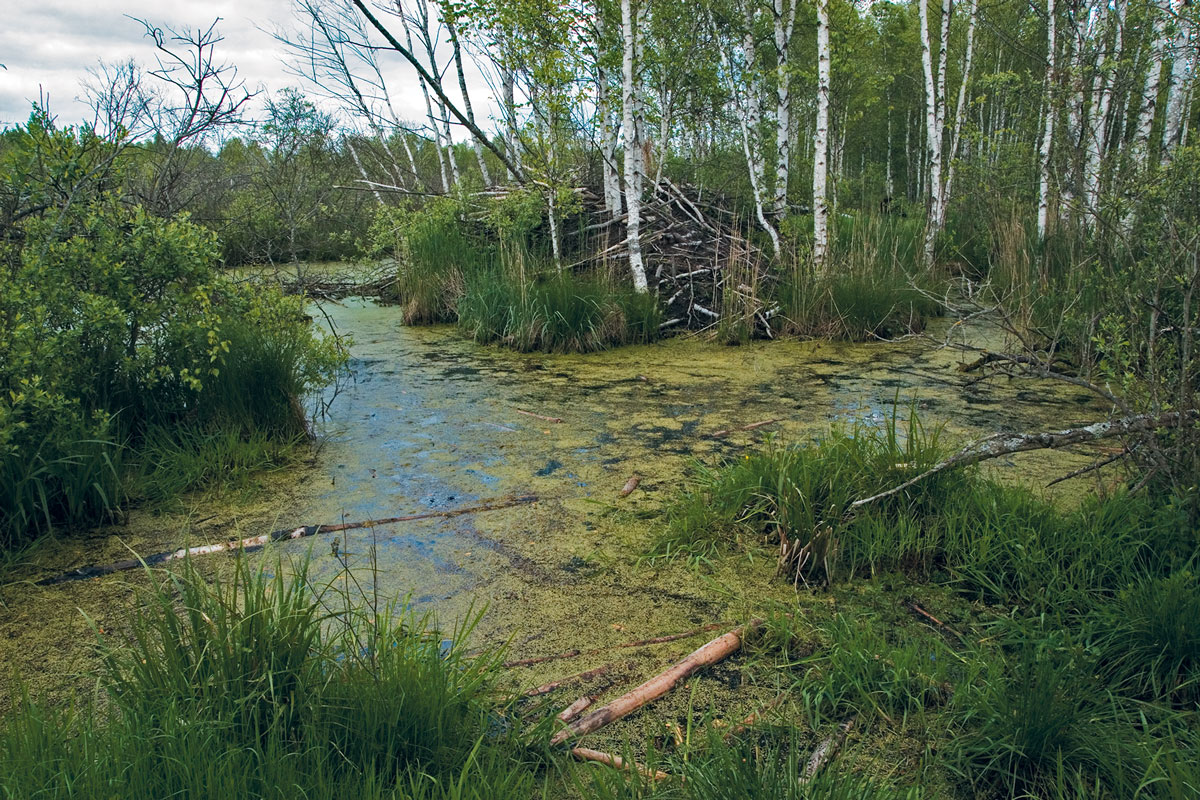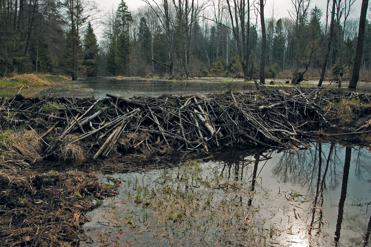 Till the 1960s Naliboki Forest, which is situated in the north-western Belarus, was a greatly swamped terrain, where on the area about two thousands km2 swamps of various types and sizes were interspersed with dry land forests the terrain-wide. Open grassy marshes constituted about 19% of the terrain. Approximately a third part of the forest habitats that covered about 76% of the area were swamped too (Sidorovich, 2016). Such a swamped forest was either in kinds of black alder and downy birch mixture (with prevalence of one of the species) or that was raised bogs with suppressed or normal pines.During draining during 1960s-1980s something between 3 and 4 thousands kilometers of drainage canals appeared in Naliboki Forest – on average about 1.78 km per one km2 of the terrain (Sidorovich, 2016). In effect the density of watercourse network (canals and rivers altogether) increased 2.6 times, and it became 2.1 km per km2versus 0.8 km per km2 before the draining. The drainage canals gradually overgrew with willow bushes and young trees and they became relevant, even favourable habitats for beavers.