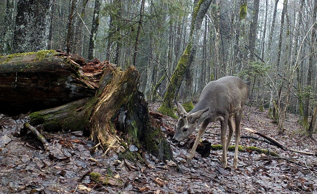 Roe deer is investigating the lynx marking point