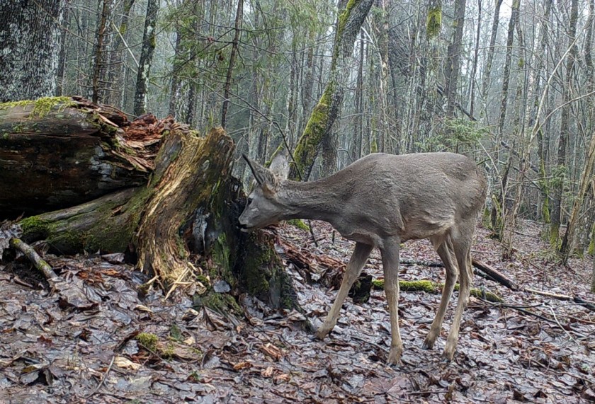 Roe deer is investigating the lynx marking point