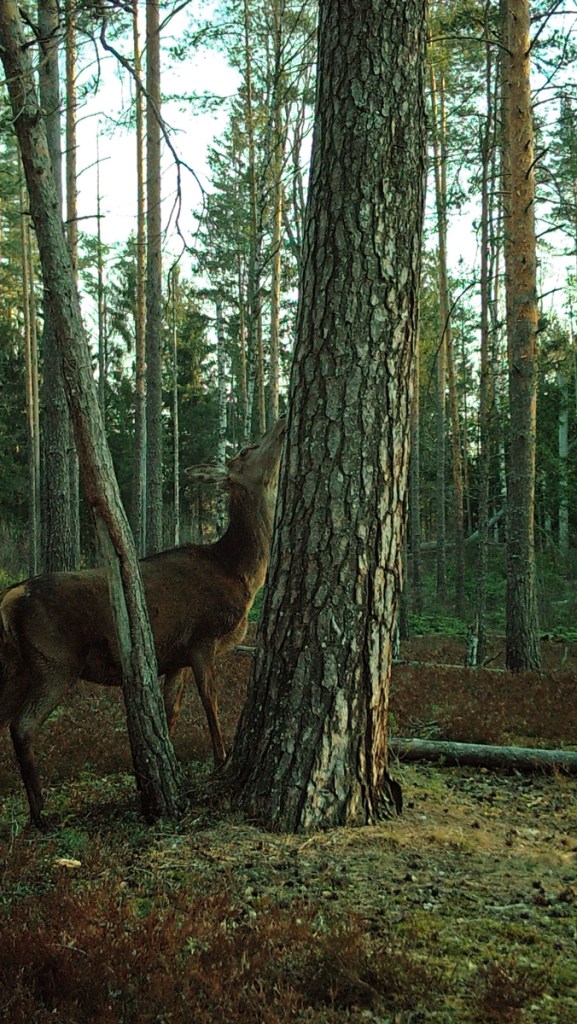 Previous Image Next Image MFDC3637impweb Red deer saw and heard the lynx on the pine, and afterwards it investigates the spot with the pine