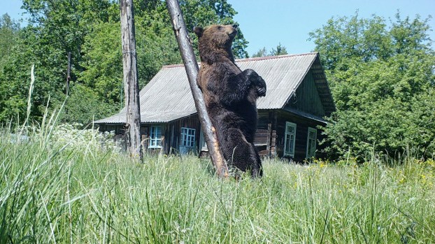 Why do brown bears act so much at tar-treated power poles (Barsucha steading, Naliboki Forest, Belarus)?
