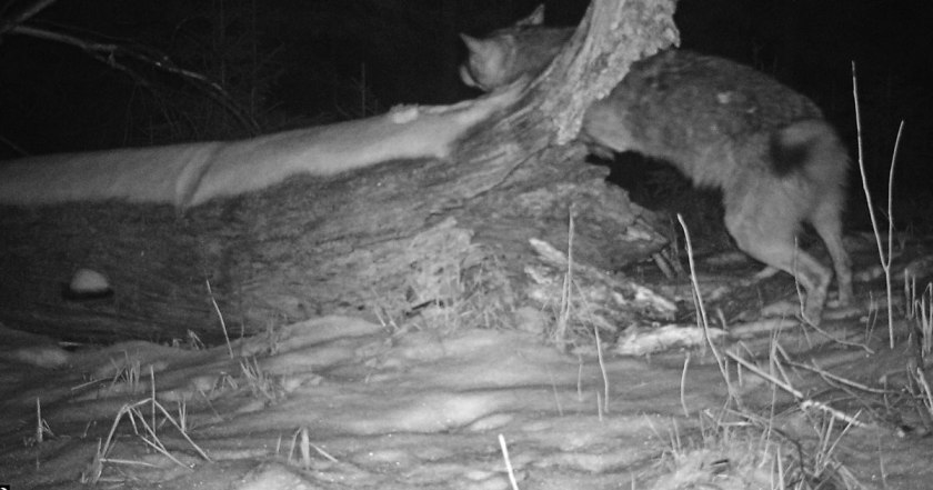 The few red foxes that still survive within densely forested habitats are mostly large adult males; as illustrated by the photos of a red fox, a known adult female wolf and a known small adult male lynx in the same spot.