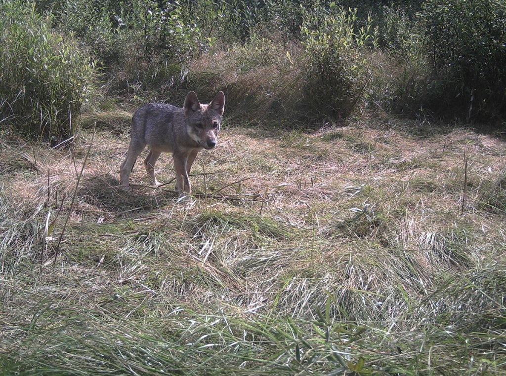 While the wolf families stayed in the 20 hectare homesite, the pups, being 80-90 days old, walked up to 2 km away from the homesite centre alone or in groups 2-5 pups without any parents. This free walking behaviour of pups in so early days old was registered common in July. Respectively, when the parent wolves bring food in their stomachs, only few pups that appeared nearby were fed. They were registered with full bellies, whereas other pups were registered with almost empty stomach. All the pups ate bilberries a lot.