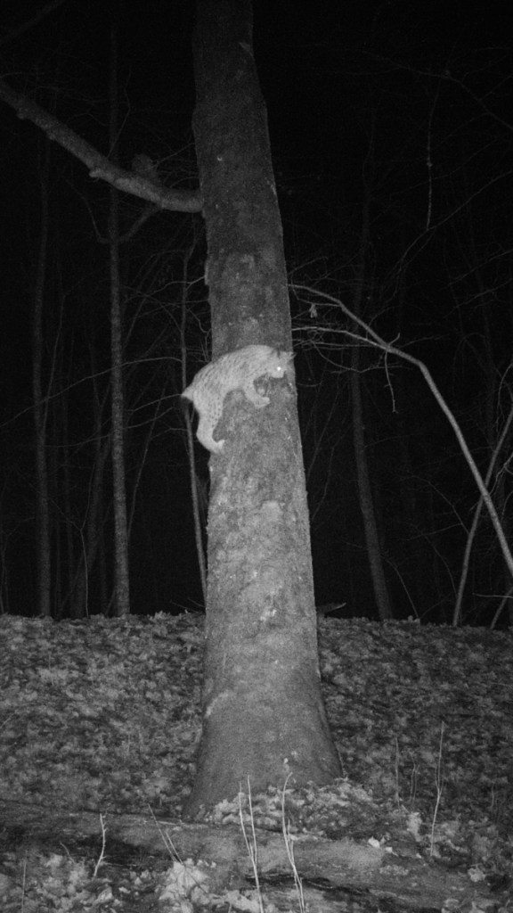 From the photos you may see the climbing technique which lynxes apply to climb a wide deciduous tree. Lynx embraces wide trunk by fore paws and lift hind legs to the belly level. This moment lynx hitches by hind paw claws and, by pushing of with hind legs, it grabs about one meter higher by claws of fore legs. Also, it is worthwhile to notice that adult lynx may fix itself even on bark of deciduous tree in all direction positions.