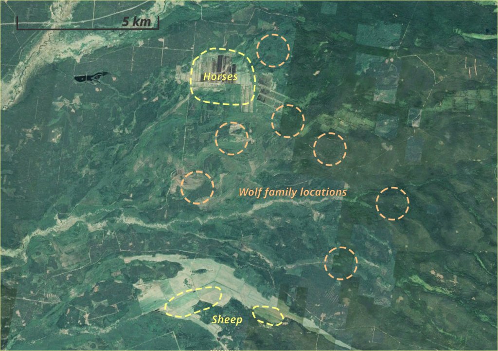 Dear Gerard, thanks for the comment. I am not in good knowledge to answer on all your question correctly. We are only going to investigate all these suddenly appeared questions. Really before wolves were reluctant to prey the horses as a new strange prey that is widely known in the world for such a situation. They only scavenged on horse carcasses. Nowadays, they gather foals and kill weakened individuals even big ones. We observed as wolves for an hour roamed between the horses searching for suitable situation to take young horse. Therefore, the horse population grow so slow, and in autumn there are surprisingly few young horses between adults. As to sheep, they appeared quite suddenly. Perhaps, the local farmers found the way how to earn with raising of sheep. But it is so expensive to provide a good guarding of sheep in Naliboki Forest. So, the farmers hope that the sheep reproducing will prevail on taking them by wolves. Even perhaps just I made sure of one of the farmers that there would not be so many wolves to damage his sheep dramatically due to wolves are strictly territorial and have large territory particularly in breeding season. Now with that wolf breeding clan that we have found I see that I made mistake. Poor farmer. Warm regards, Vadim