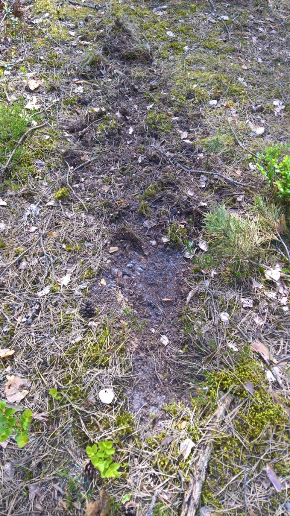The marking occurred within areas of approximately 4 to 7 square kilometers. Along forest roads, relatively fresh wolf markings (left within the previous 20–30 full days) were found spaced up to about 300 meters apart, with an average distance of 120–180 meters. In many places, continuous marking stretched for several hundred meters.